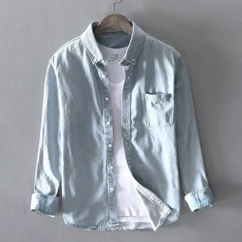 • Washed texture with clean button-down front
